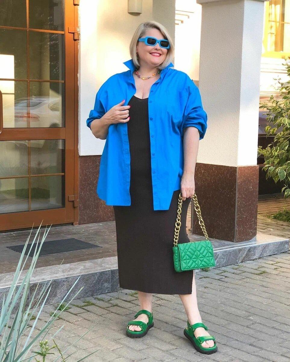 При невысоком росте и размере больше 52 можно носить самые современные образы. Модный стиль оверсайз позволяет не подгонять длину рукавов, и носить их даже не подворачивая. Подберите к образу стильную, но обязательно удобную обувь.