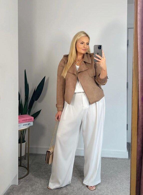 Полнота плеч и бедер – не помеха для того, чтобы носить самые стильные и актуальные вещи. Кожа и замша хорошо садится по фигуре, а модные широкие брюки придадут свободу и комфорт образу.