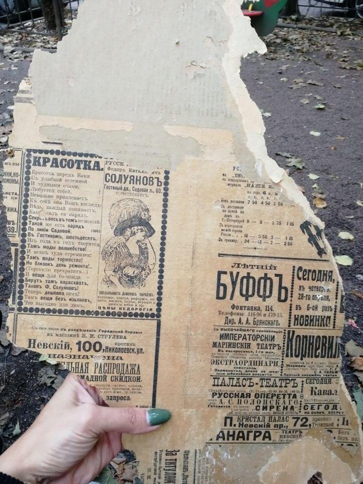 - Во время ремонта была обнаружена газета начала ХХ века, а также пули от револьвера в стене, на которую и была наклеена эта газета