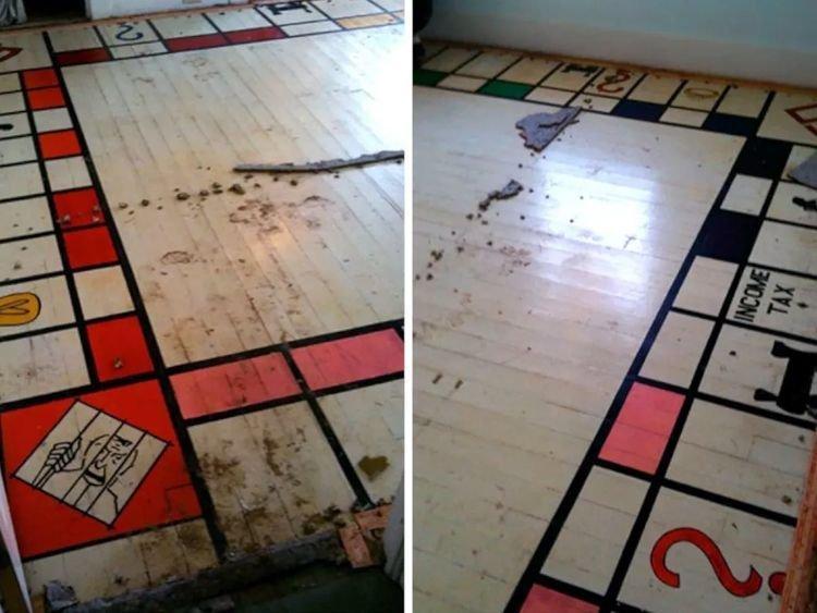 Поле для игры в Монополию размером с комнату. Пряталось под ковролином все время.