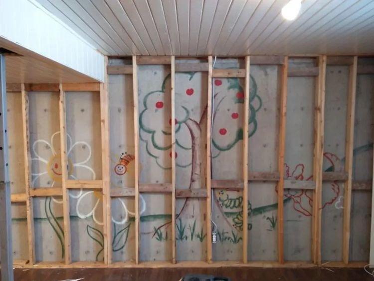 - За декоративной стеной нашелся вот такой милый детский рисунок