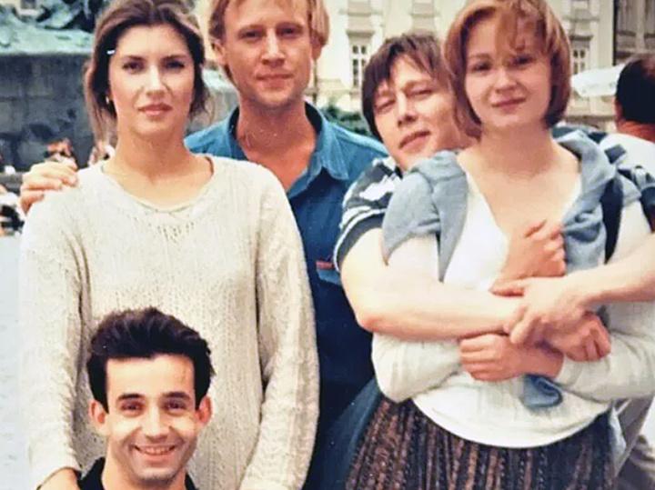 На снимке ниже: Вера Сотникова, Дмитрий Певцов, Дима Харатьян, Евгения Добровольская и Михаил Ефремов в 90-е годы.
