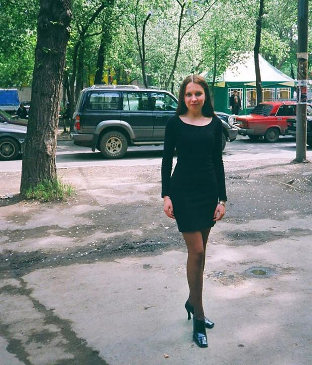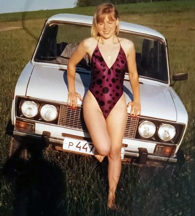 Не было такого лоска и ухоженности, как сейчас, например, в Москве. Ларьки, множество магазинчиков, подвалов с разной продукцией, часто плохого качества. Жигули, Москвичи, на фото выше юная красотка как раз позирует на фоне подобной машины, заполоняли дороги и дворы российских городков.