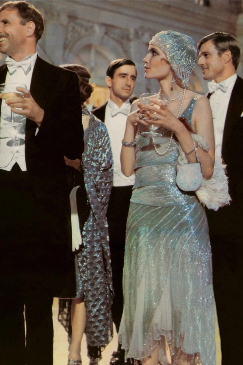 В экранизации романа «Великий Гэтсби» 1974 года Миа Фэрроу произвела настоящий фурор, исполнив роль Дейзи. Её образ запомнился зрителям не только благодаря актёрской игре, но и благодаря потрясающему наряду. Вечернее платье из бисера с подходящим головным убором и мини-сумочкой стало настоящим произведением искусства. Оно подчёркивало женственность и элегантность актрисы, а также отражало дух эпохи джаза, о которой рассказывает роман.
