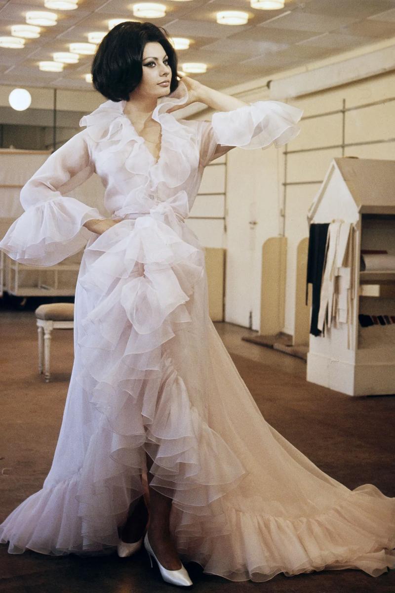 Неаполитанская русалка Софи Лорен задолго до того, как она стала классикой на красных ковровых дорожках по всему миру, любила покрывать себя ярдами розовой шёлковой органзы. Платье, о котором идёт речь, было сшито для актрисы Марком Боханом из Arab. Она надела его в триллере «Арабески» в 1966 году. У Софи Лорен один из самых красивых гардеробов, которые когда-либо видели в кино. В создании некоторых её костюмов лично участвовал Ив Сен-Лоран.
