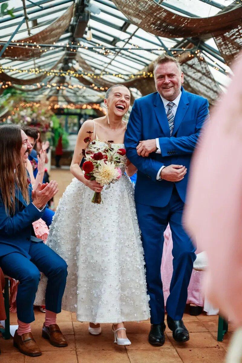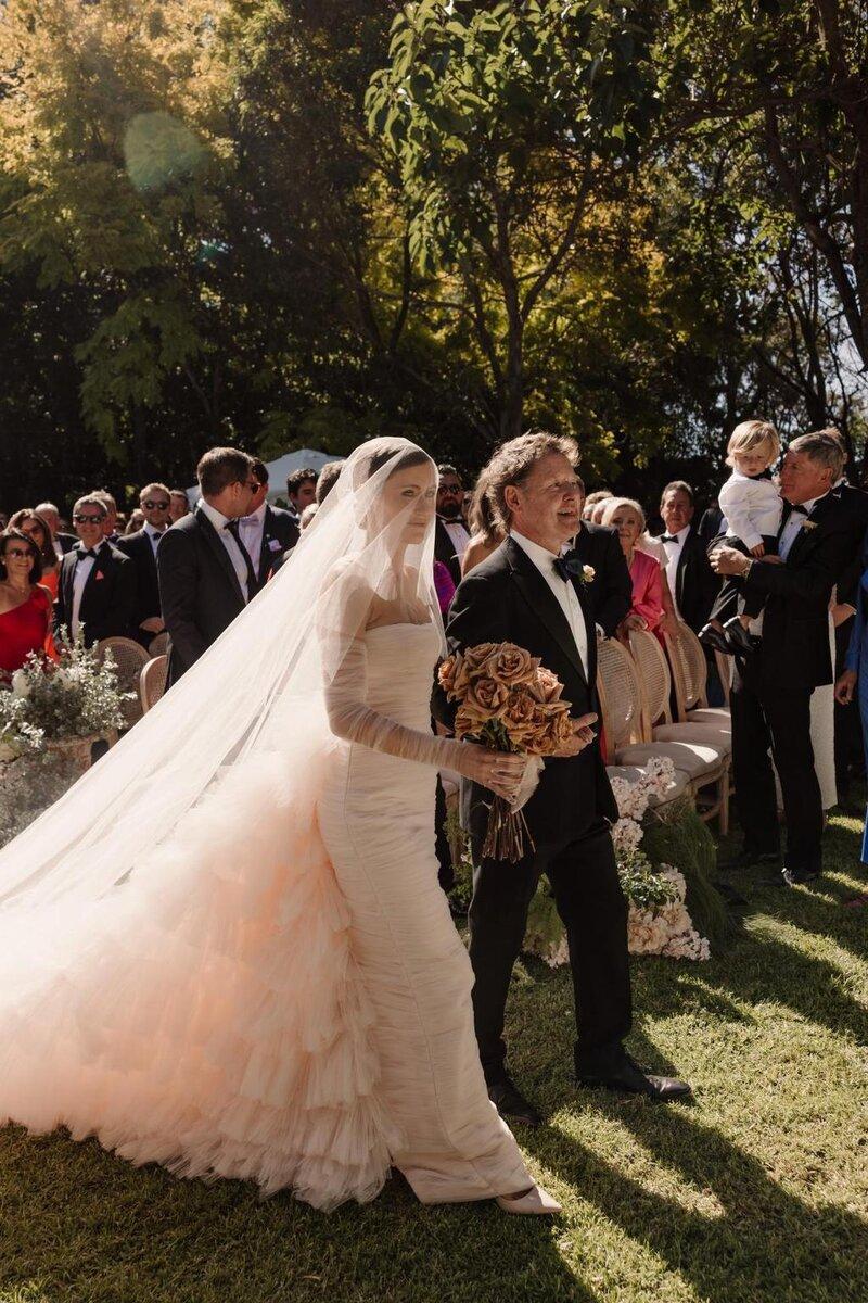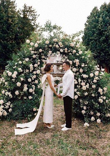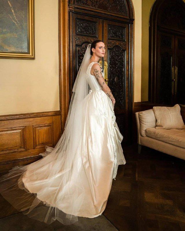 Невеста главного фронтмена группы The Smashing Pumpkins, платье и костюм жениха готовил модный дом House of Gilles.