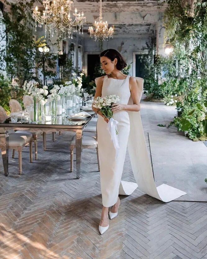 Главной идей образа надеть платье еще раз, а не ограничиваться свадьбой и поддержать тренд «over and over» . Гениально!