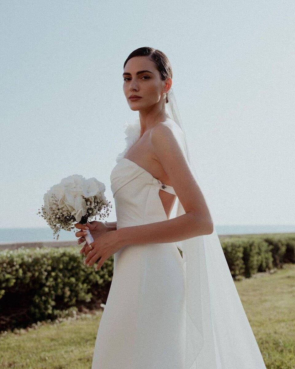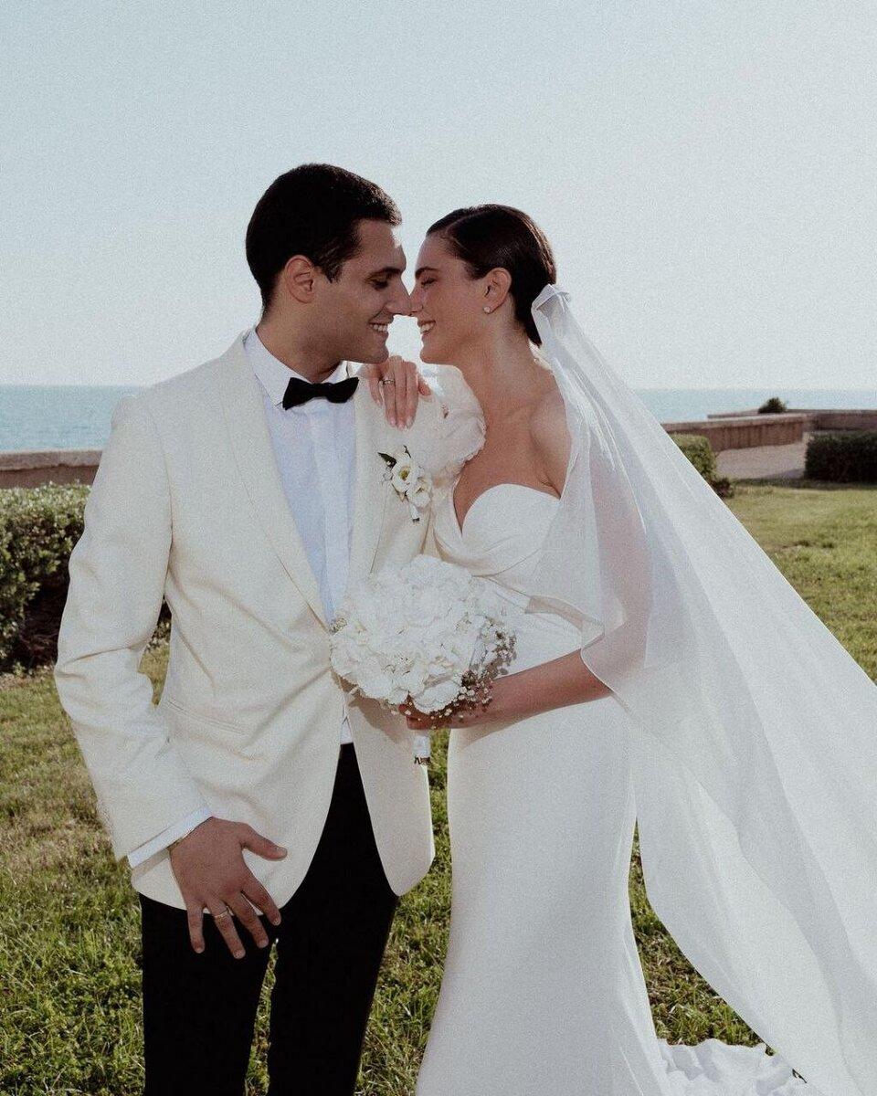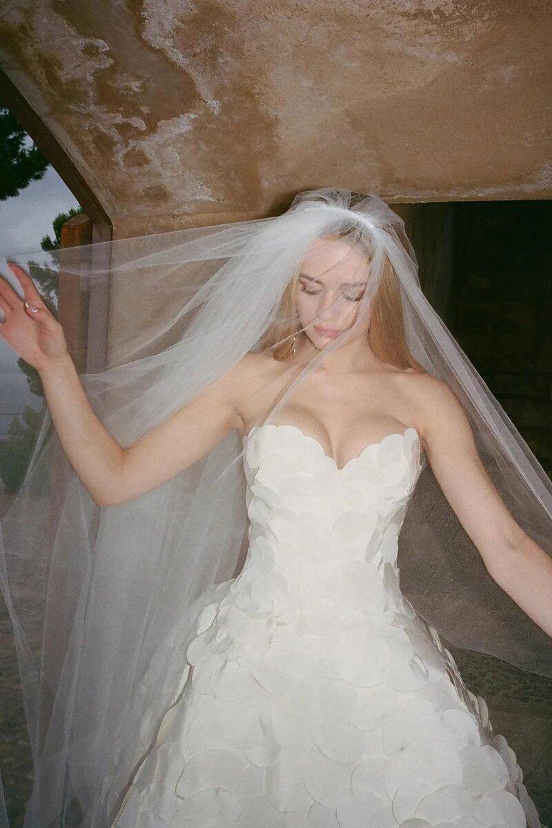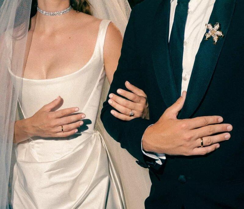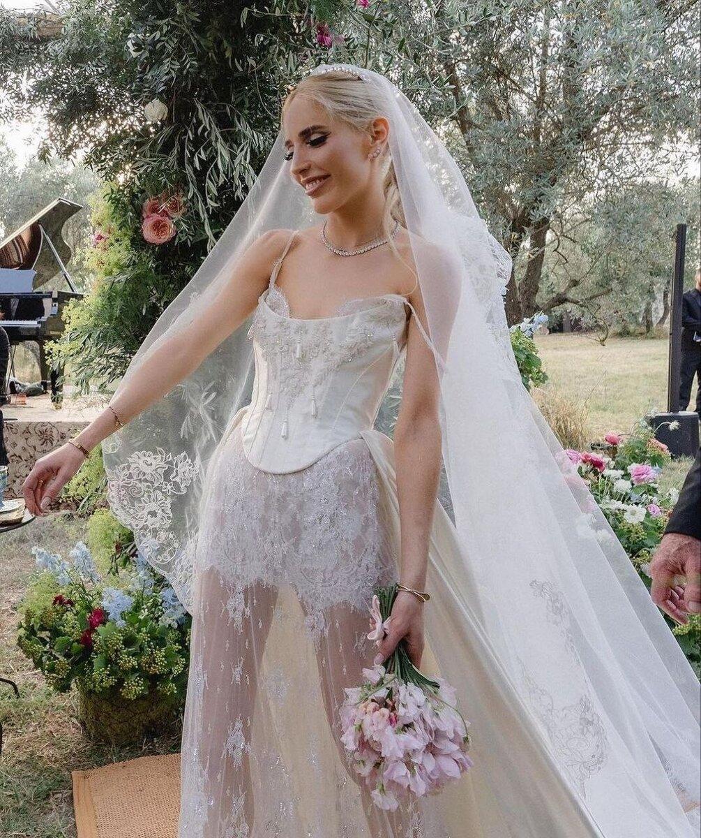 Свадьба прошла в Риме и главным платьем церемонии стал классический силуэт от дизайнера Vera Wang, а также на вторую часть вечера потрясающий мини от Materiel.