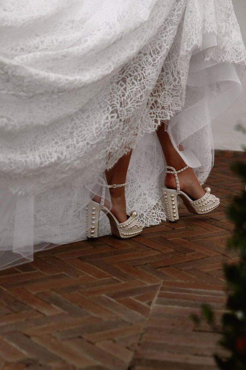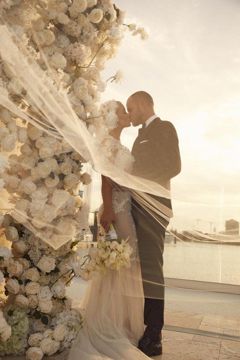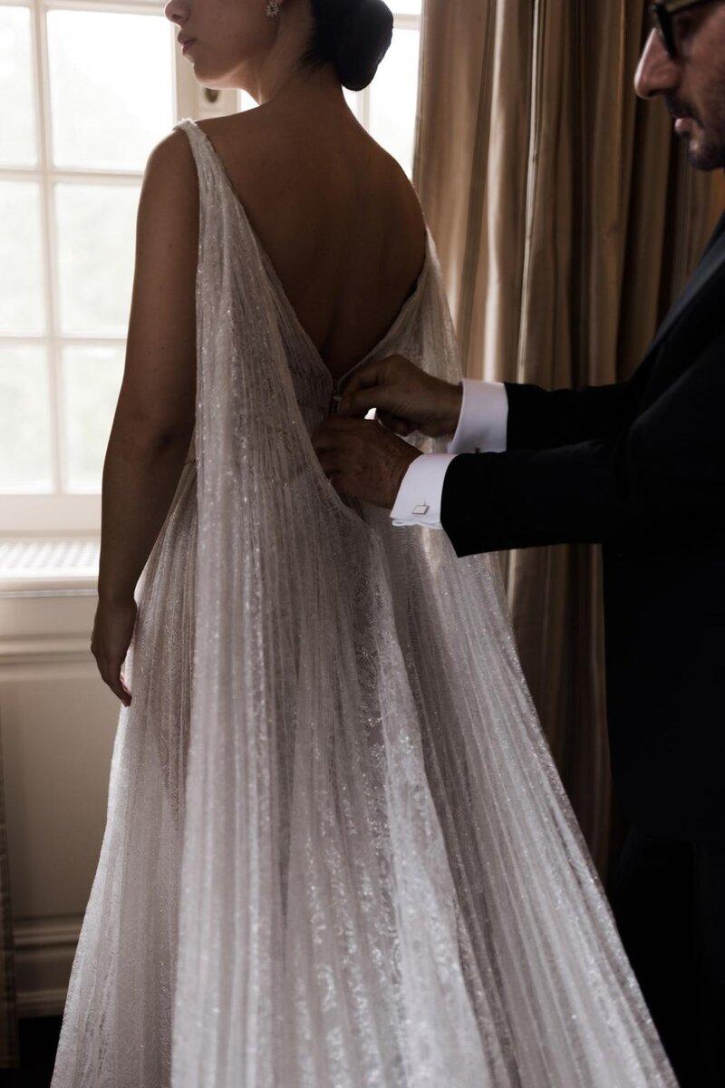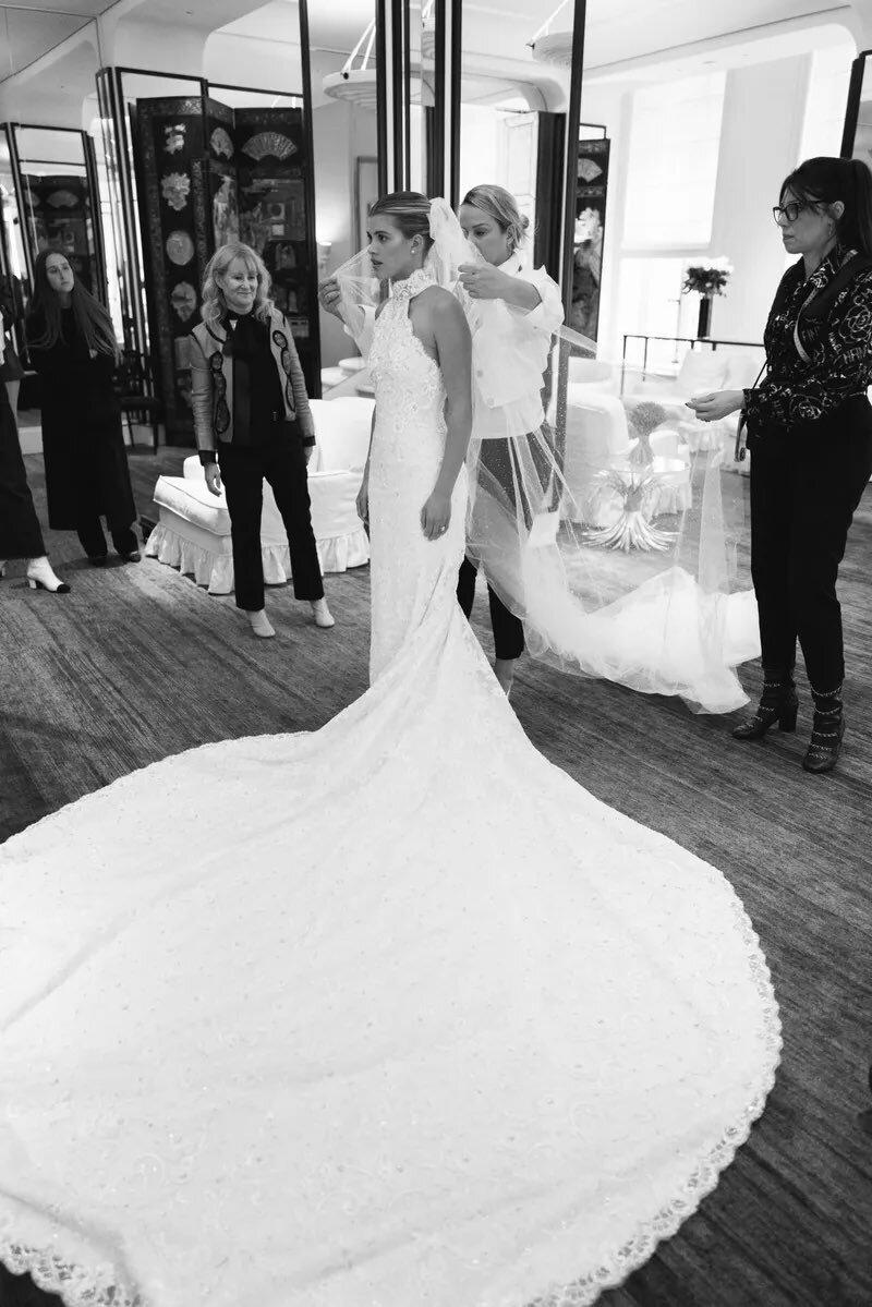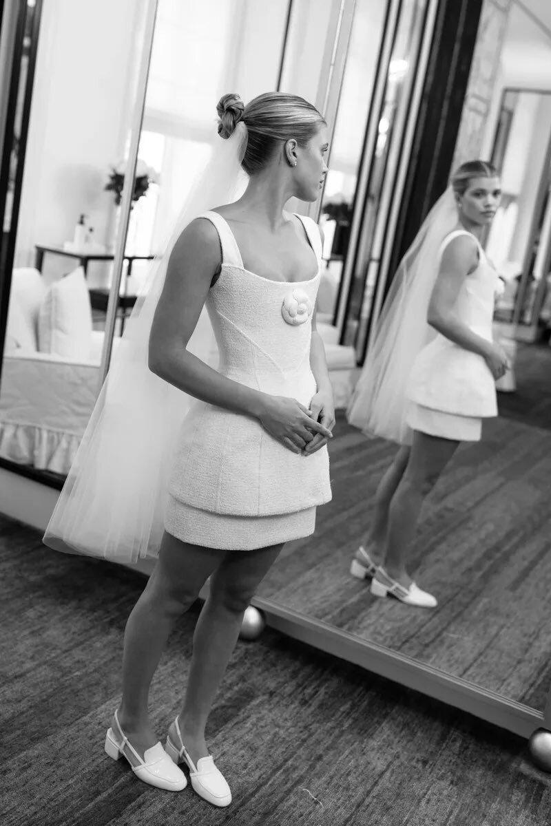 Свадьба прошла в Риме и главным платьем церемонии стал классический силуэт от дизайнера Vera Wang, а также на вторую часть вечера потрясающий мини от Materiel.