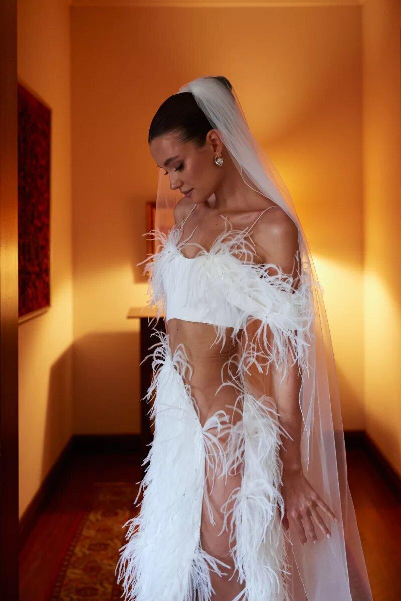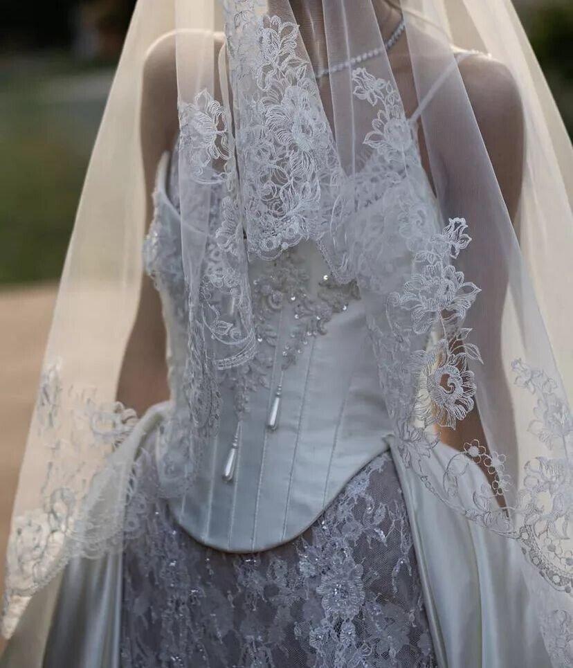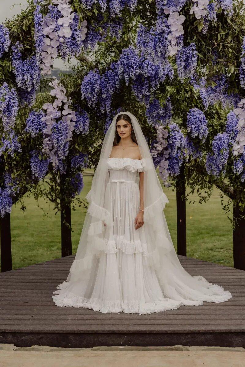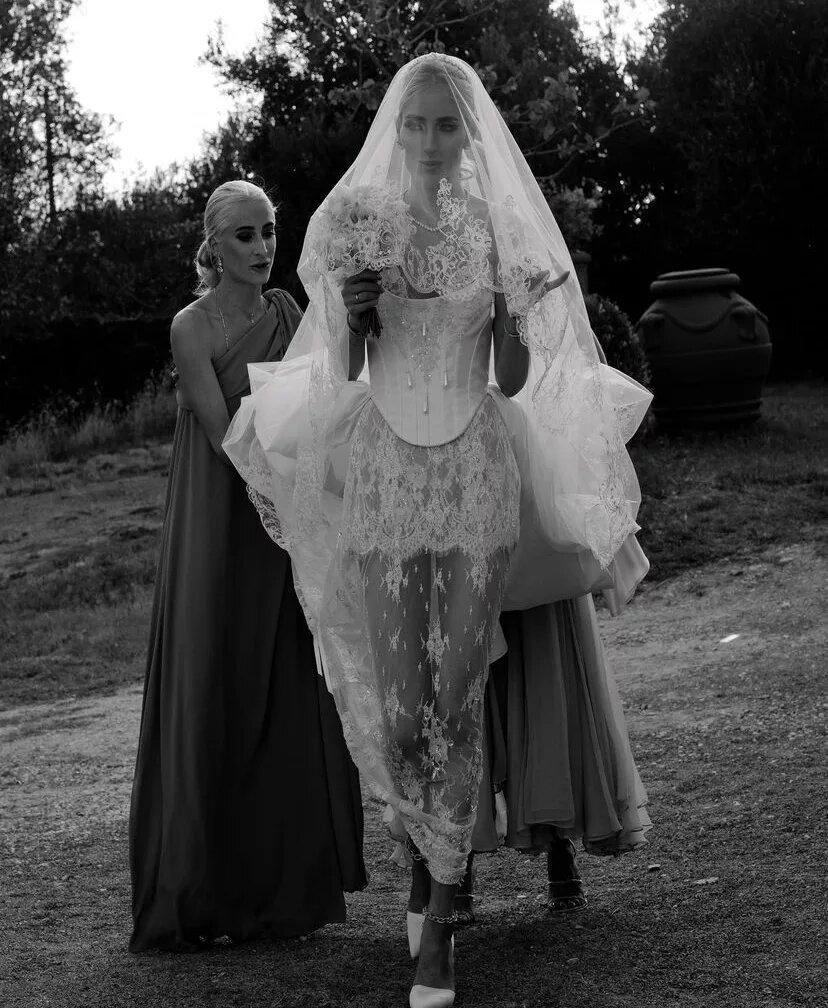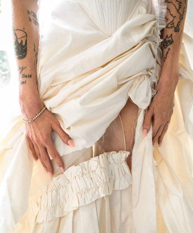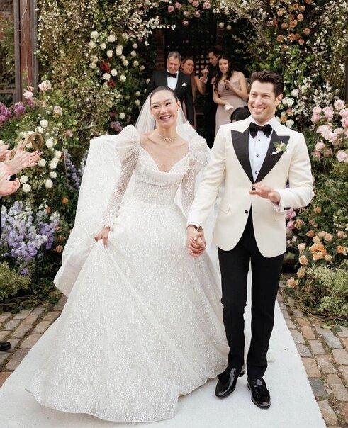 Модель Victoria’s secret отдала предпочтение платью дизайнера Vivienne Westwood, платья Вивьен в 2023 году, кстати, выбирали многие звездные невесты.