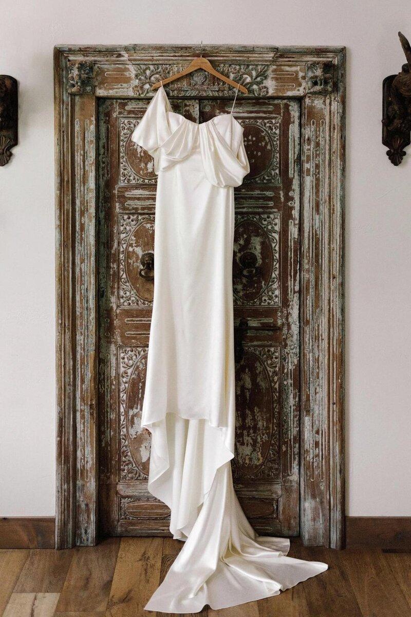 Самый необычный выбор дизайнера, свадебное платье от Etro, до этого бренд не выпускал свадебные коллекции и не делал свадебных образов. Дизайнеры Etro воплотили все мечты невесты о платье в стиле бохо, а сама свадьба прошла на ранчо.
