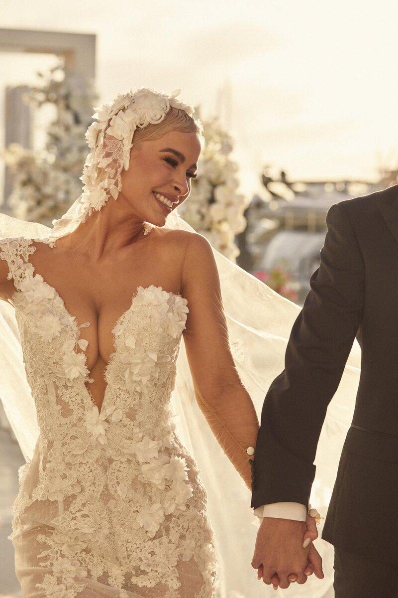 В день свадьбы 29-летняя невеста выглядела потрясающе в свадебном платье цвета слоновой кости от ливанского дизайнера Elie Saab, которого любят и звезды, и королевские особы.