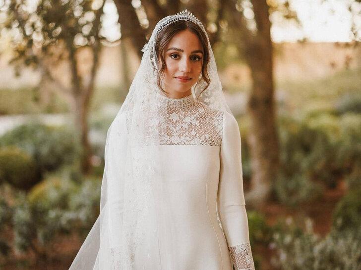 Принцесса Иман выбрала изысканное платье Dior и расшитую цветами фату, тиару своей бабушки.