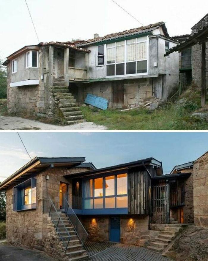 На верхнем фото дом до ремонта, внизу после ремонта. Какой из вариантов вам больше нравится?