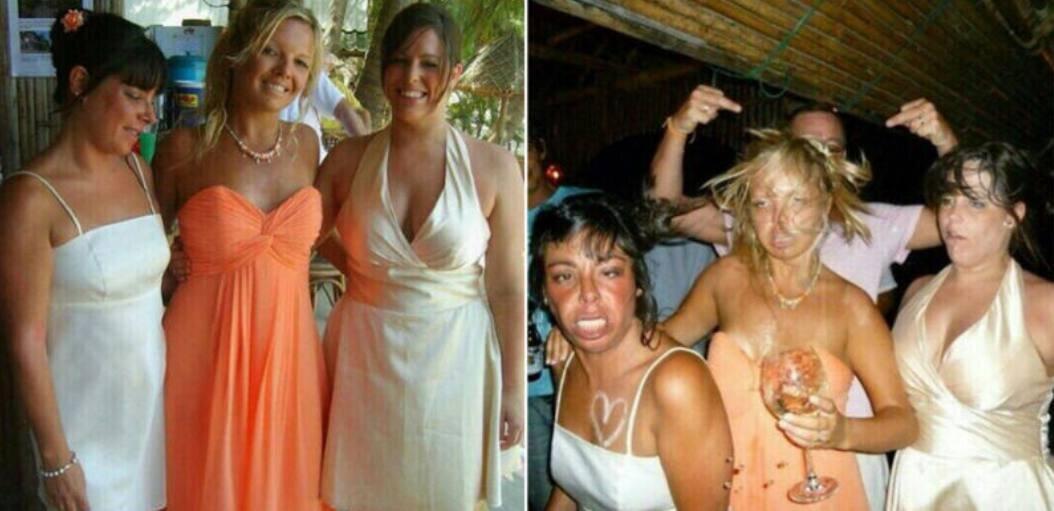 Три подруги сделали фото до вечеринки и второе фото уже в самом конце вечеринки. Изменения на лицо.