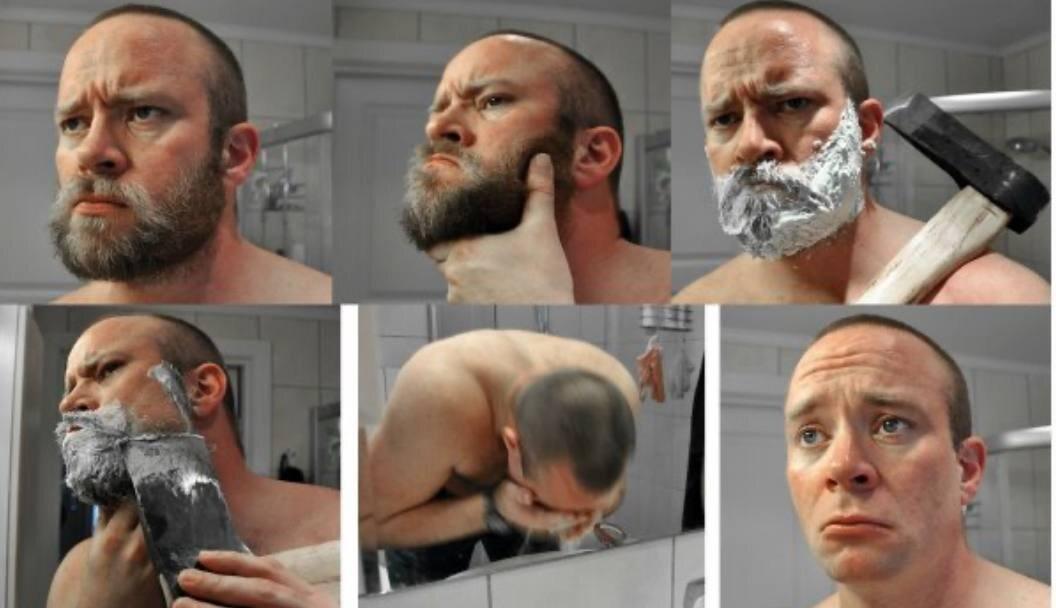 Мужчина решил запечатлеть процесс бритья бороды на фото. Результат получился забавным, особенно первое и последнее фото. Напишите в комментариях, какое фото вам нравится больше.