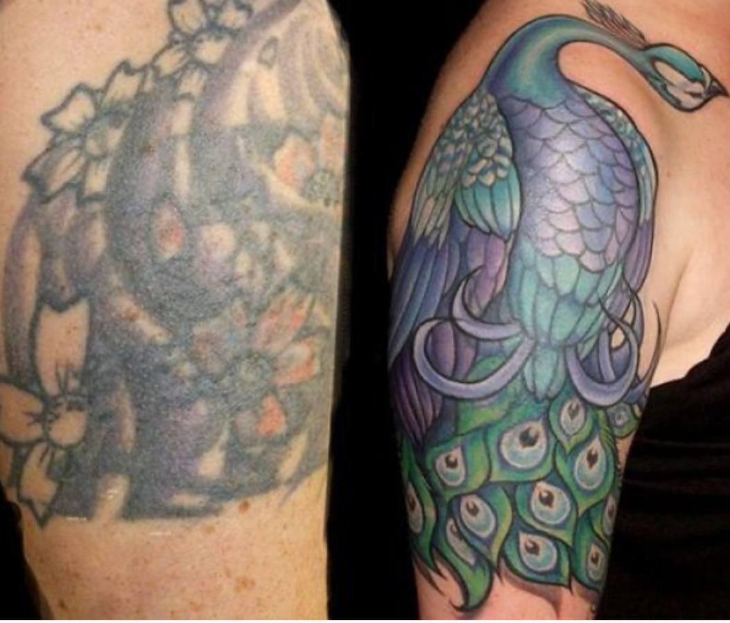 У мужчины выцвела татуировка, и он решил её переделать. На фото слева вы видите татуировку до, а справа — после того, как он её перебил.