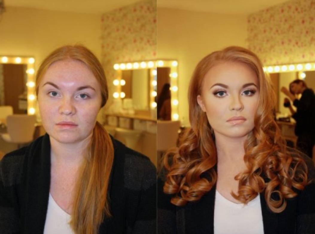 Вы не поверите, но разница между этими фотографиями всего два часа! Девушке просто сделали качественный макияж и укладку.