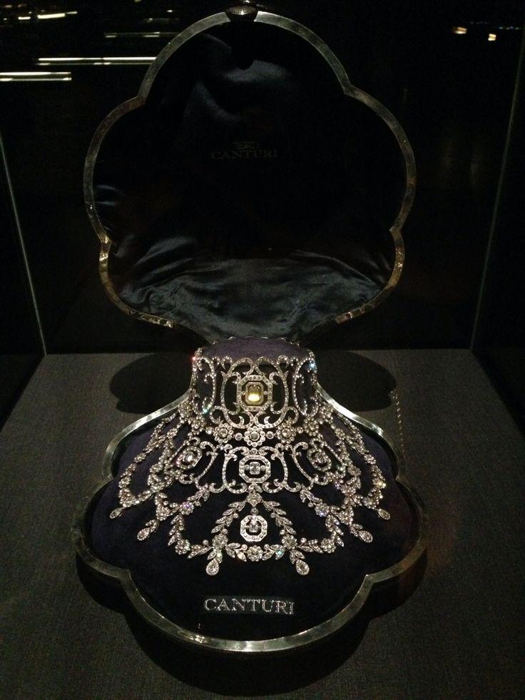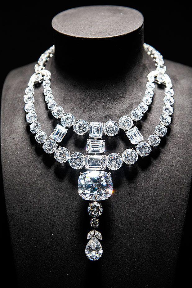 Ажурное колье, украшавшее изящное декольте Сатин ― звезды кабаре «Мулен Руж», повторяет дизайн, популярный во Франции конца XVIII века. «Легкомысленная» драгоценность состоит из 1308 миниатюрных бриллиантов общим весом в 2,5 кг и платины.