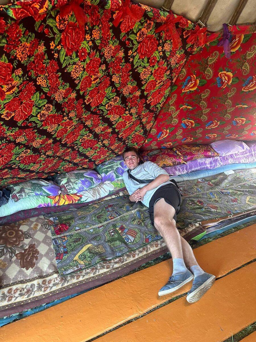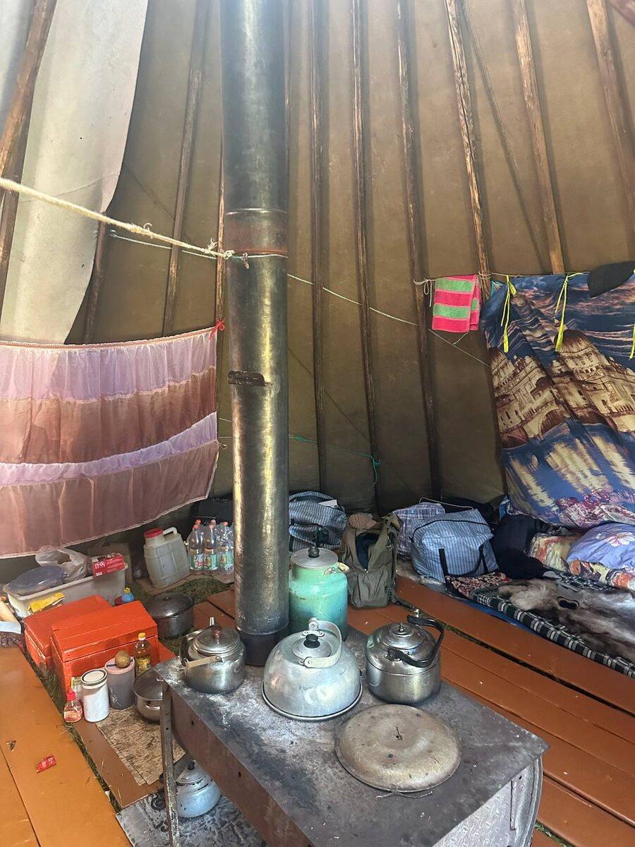 • Зона отдыха: По обе стороны от печи располагаются спальные места. Они отделены от остального пространства пологами – широкими одеялами, которые спускаются с верхних шестов. Полог создает личное, теплое пространство, где температура может быть на 10-15 градусов выше, чем в остальном чуме.
