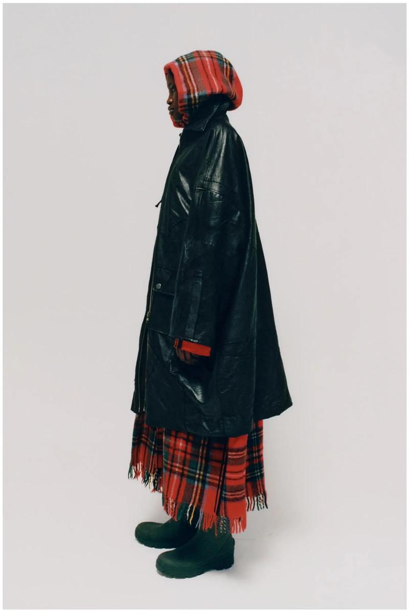 Я давно в восторге от переработанных пледов Rave Review — и осенне-зимняя коллекция 2026 года не разочаровала. Мой любимый образ? Это платье и капюшон в тартановую клетку, выглядывающие из-под кожаной куртки. В сочетании с практичными ботинками это самый стильный способ согреться этой зимой.