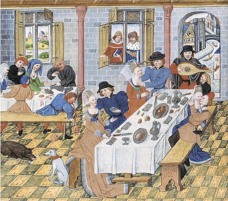 Найден манускрипт аж XV века, в котором утверждаются основные правила поведения за столом. Пальцы и ногти должны были быть чистыми, если взял кусочек — не возвращай его на общую тарелку, не трогай за столом уши и нос, выпить вино можно, только когда все прожевал и протер губы и т.д.