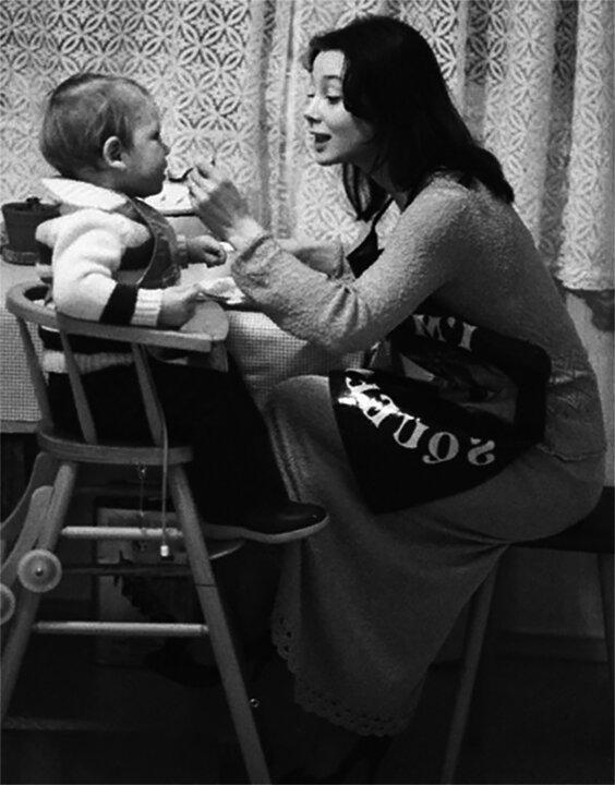 Галина Беляева кормит сына Эмиля в 1982 году, очень трогательная сцена и удивительная нежность на черно-белом фото. На фото любимая актриса предстает заботливой и доброй мамой малыша.