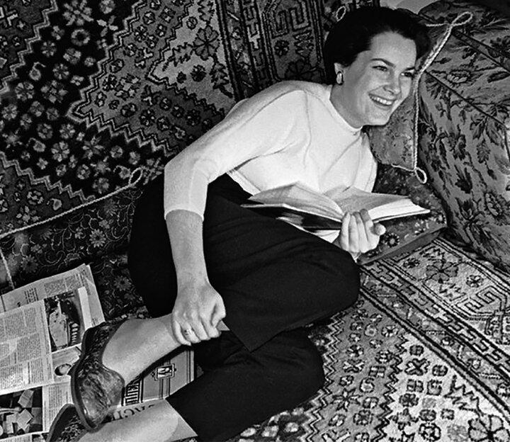 Элина Быстрицкая у себя дома, 1982 год. Такая счастливая и радостная с книгой в окружении ковров. Невероятная женщина и великолепная актриса.