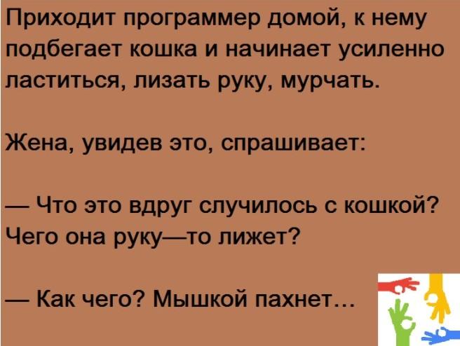 — Две недели лупил кота за лужу в туалете, а оказалось — бачок протекает…