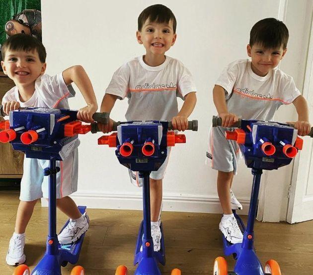 Мальчики обожают свою старшую сестру, которая является для них ещё и очень авторитетной нянькой. Ребята уже школьники. Остаётся лишь посочувствовать их учителям! Ведь различать трёх одинаковых детей, которые ещё и одеваются одинаково, непросто. Удивительно, но родители тройняшек уже давно не живут вместе.