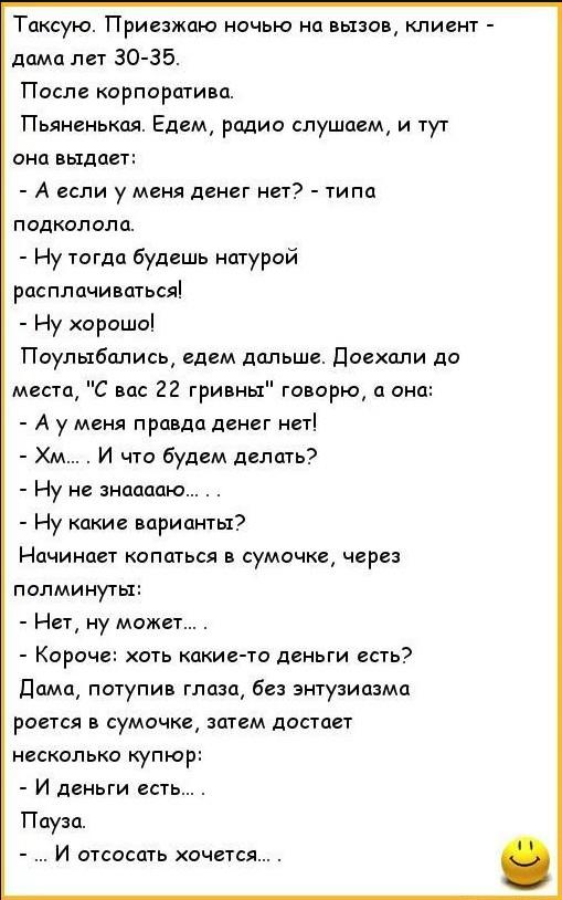 — Моей подруге муж подарил колготки и сеточку для волос. На следующий день муж приходит в магазин и говорит продавщице: — Дайте мне, пожалуйста, колготки с сеточкой для волос.