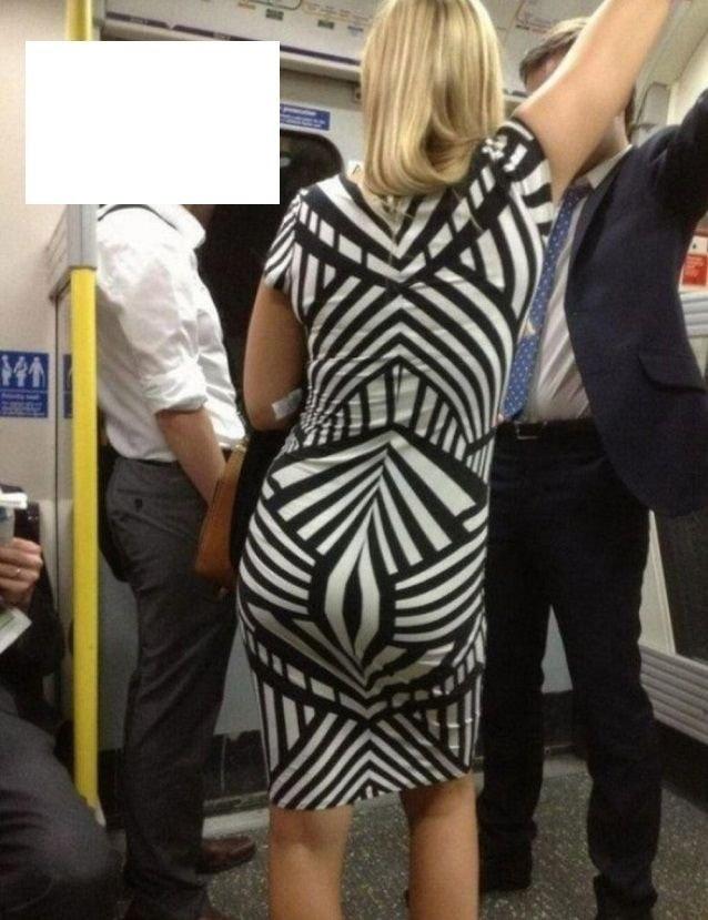 Как приятно смотреть на вещь, когда полосочка к полосочке, весь рисунок совпадает. Однако, иногда, из-за особенностей самого принта, симметрия превращается в ее полную противоположность. Мы видим примеры, где рисунок, задуманный симметричным, из-за особенностей кроя и посадки на фигуре образует непреднамеренный, но весьма забавный эффект, создавая иллюзию анатомических особенностей на теле. Курьез на одежде, который, не примерив перед покупкой, можно и не заметить. Хвала закройщику, но на вещи без улыбки не взглянешь!
