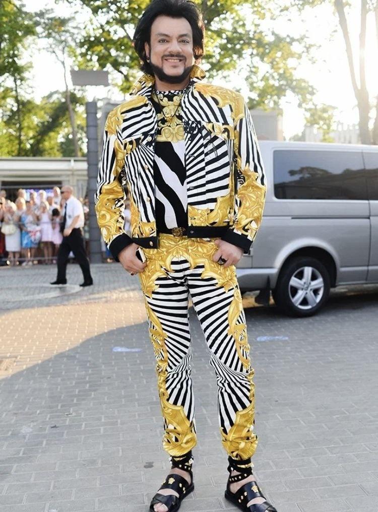 А вот «король» поп-сцены, Филипп Киркоров, без сомнения, намеренно облачился в брендовый наряд, дабы гротескно подчеркнуть свои «достоинства». И, судя по всему, ничуть не смущен произведенным эффектом. Что ж, ему ли судить себя?