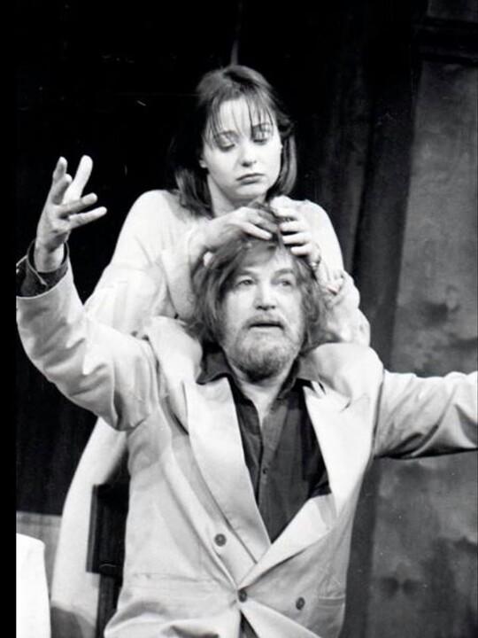 В 1996-м Михаил Олегович покинул труппу. На игровой площадке бывшие супруги встретились как раз для съемкок фильма «Артистка.»