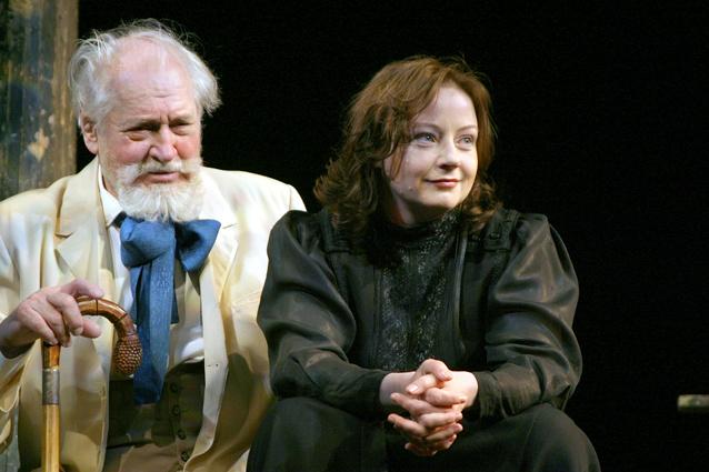 Пусть она по-прежнему ходит в черном, нюхает табак и пьет водку, Маша в исполнении Добровольской отнюдь не прямое воплощение трагичности и страданий. Актриса со своим уникальным даром драматической клоунессы в своей героине больше, пожалуй, чем другие в своих персонажах, играет комедию рока.