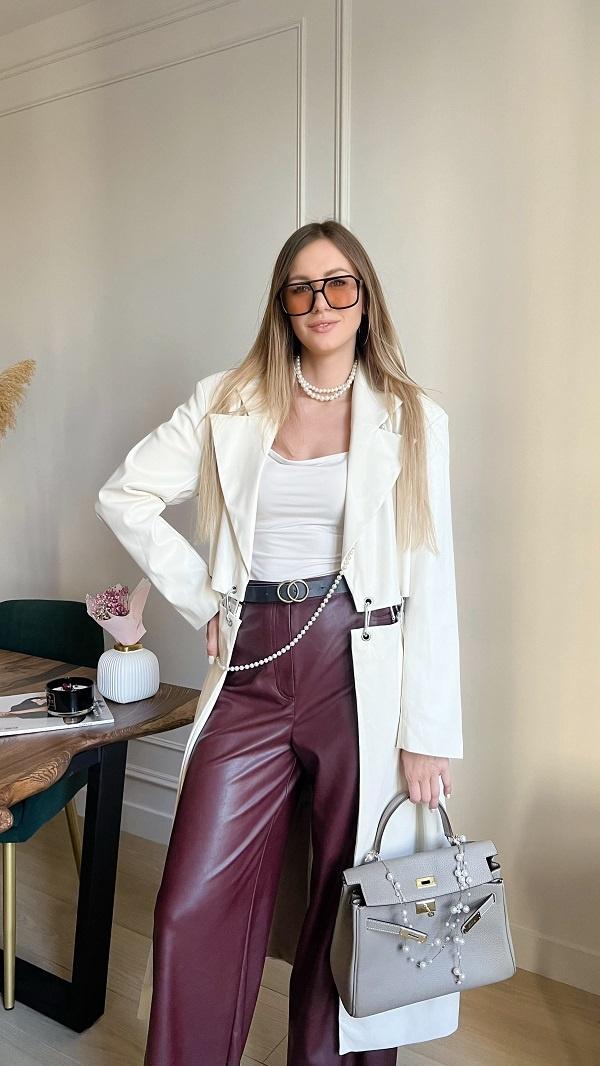 Кожа снова на пике популярности! В 2024 году каждая модница просто обязана иметь в гардеробе кожаные брюки. Черные или бордовые — они добавят дерзости и сексуальности любому твоему образу. При этом они прекрасно сохраняют тепло, что делает их незаменимыми для холодной осени.