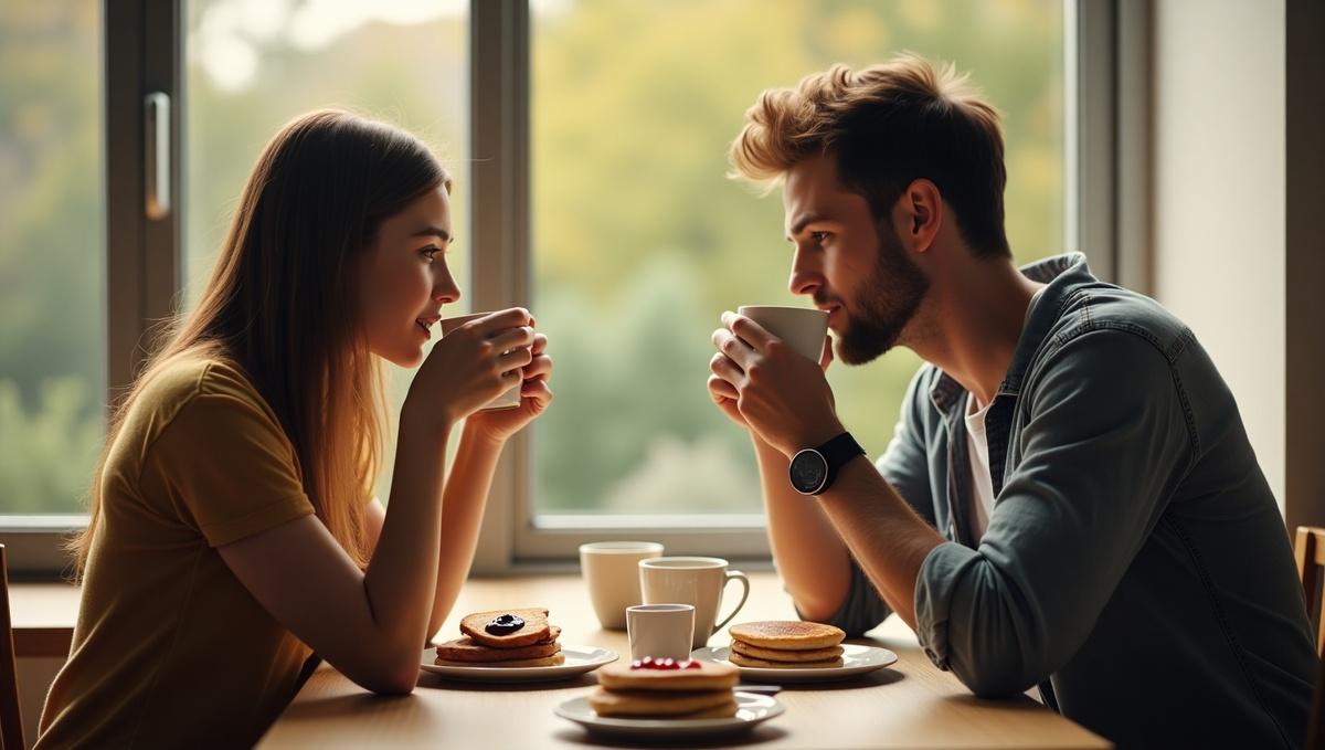 На кухне его ждала жена, Марина. Она готовила завтрак и уже поставила чайник.