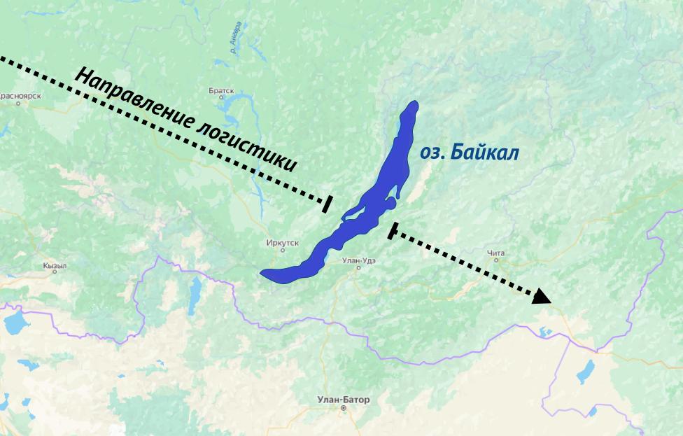 При этом, Байкал преграждает путь главным транспортным маршрутам. Грубо говоря, эти маршруты тянутся вдоль параллелей (с запада на восток), а Байкал им практически перпендикулярен.