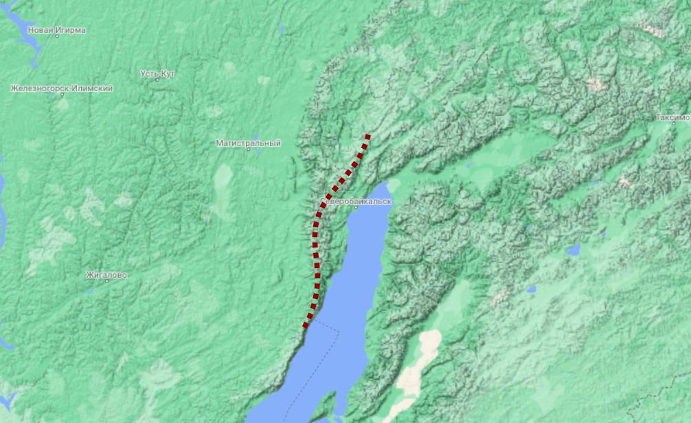 Озеро Байкал является естественной водной преградой протяженностью около 660 километров, что примерно соответствует расстоянию от Москвы до Санкт-Петербурга по прямой.