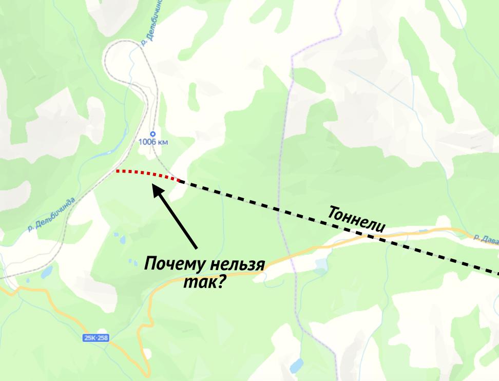 Несколько раз видел комментарии с вопросом, почему нельзя было взять и просто продлить тоннель немного дальше (буквально на 800 метров), чтобы «срезать» такой крюк и сделать дорогу более прямой?
