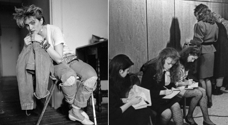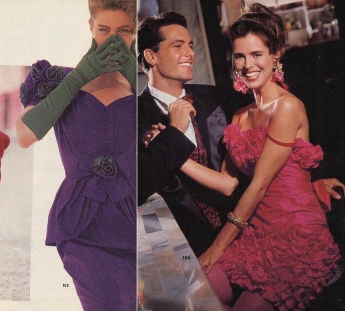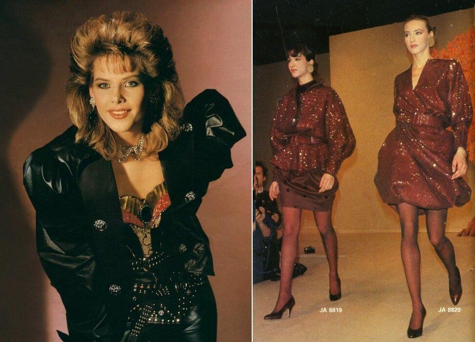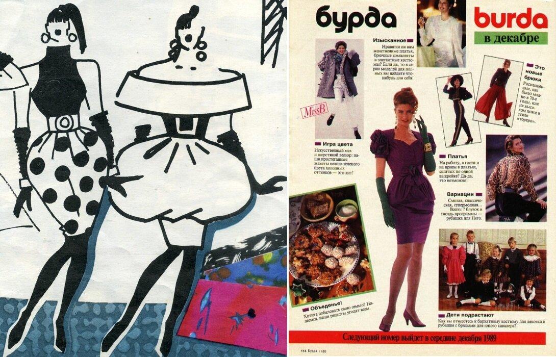 Даже в журнале для европейских домохозяек – Burda Moden постоянно шла тема показной роскоши и блестящих тканей. Но это — вечерне-празднично-концертный случай. Да, ажурные колготы Нины-Кисули (Ингеборга Дапкунайте) – распространённый вариант 1980-х. В них тогда ходили почти все девушки, включая жирных и кособоких. С длиной миди или скромненькое мини в 99 из 100.
