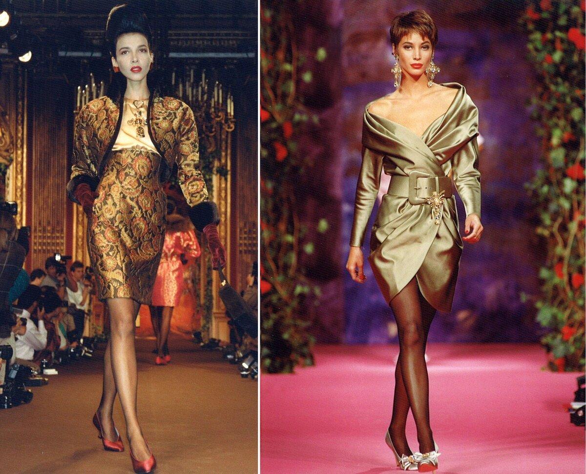 Возьмём Christian-а Lacroix, буквально «выстрелившего» своими коллекциями 1987-1988 годов с радикальным мини, юбками-тюльпанами, нарочито шикарной тканью и полным отказом от «скучной элегантности». Туда же подтянулся и Gianni Versace с его тигрино-леопардовой темой и барочными наворотами.