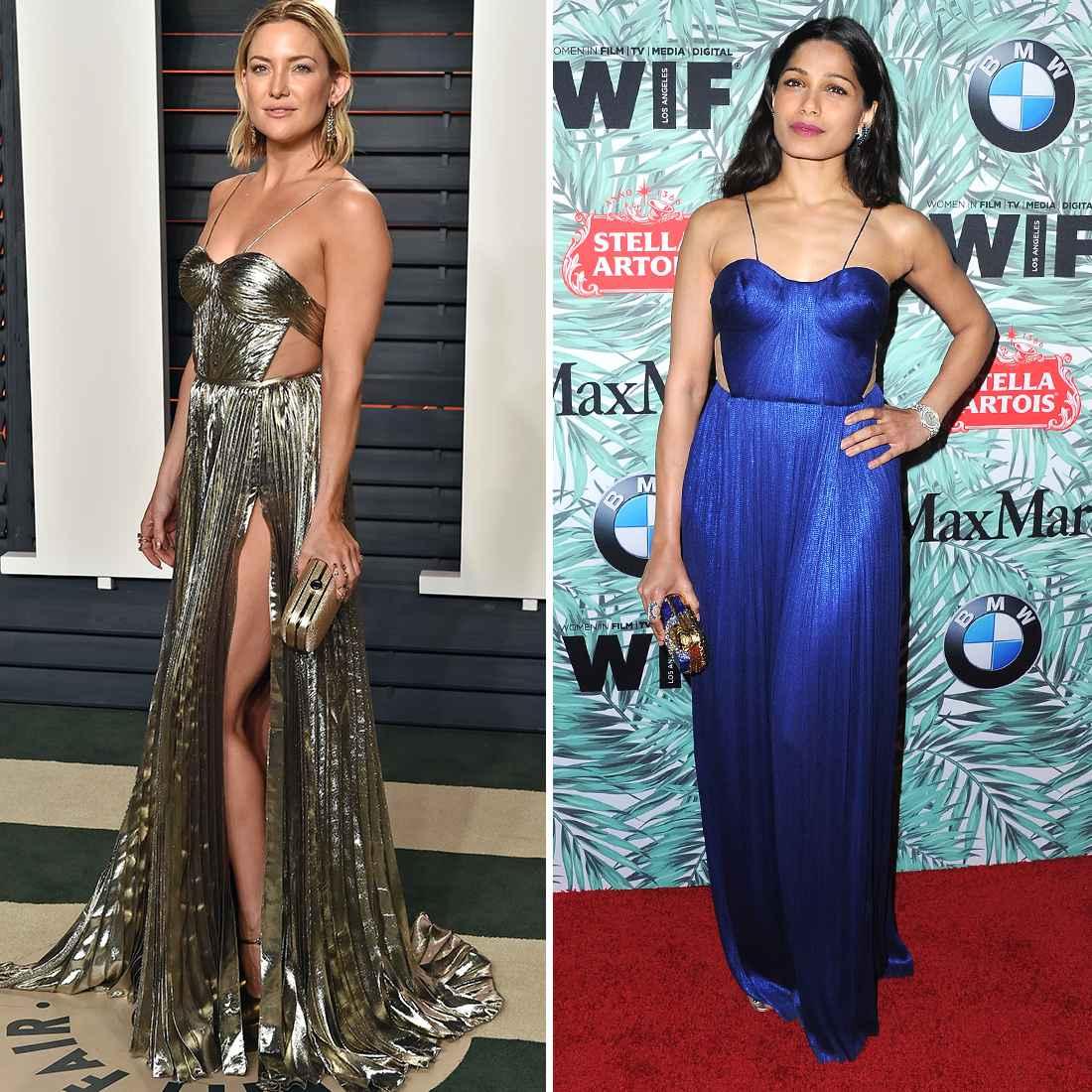 В этом платье Maria Lucia Hohan Кейт Хадсон блистала в 2016-м. Спустя год Фрида Пинто отдала предпочтение такой же модели, выполненной в темно-синем цвете, но выглядела совсем не так эффектно, как ее американская коллега. Возможно, все дело в отсутствии разреза или другом оттенке ткани?