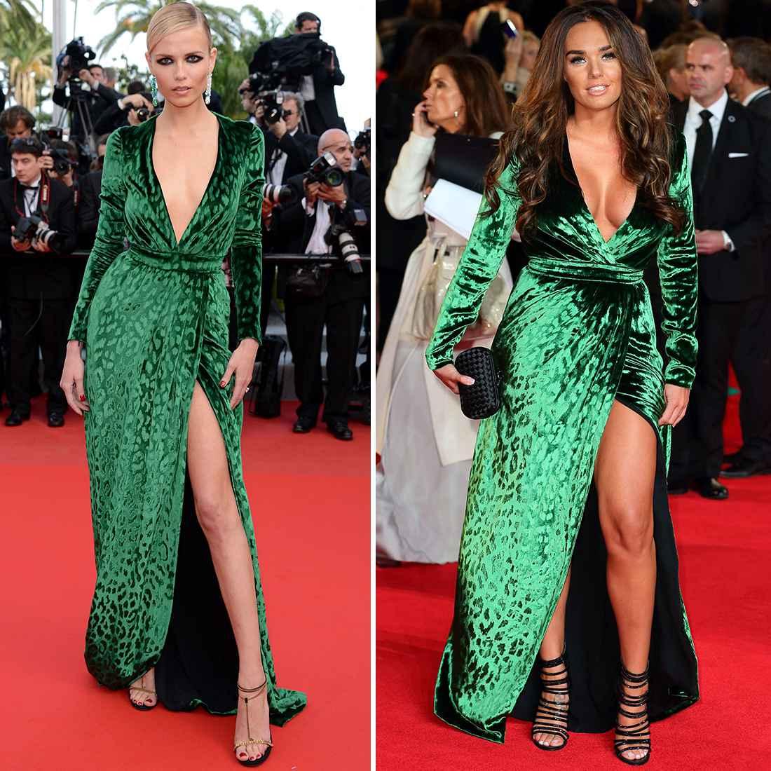 Любой бархатный наряд — не лучший вариант для девушки с формами. Но дочь британского миллиардера Тамара Экклстоун почему-то решила, что к ней это правило не относится, и рискнула выйти в свет в зеленом платье Tom Ford. На ней этот сексуальный наряд смотрится совсем не соблазнительно и больше напоминает штору из актового зала провинциального дворца культуры. Другое дело — Наташа Поли. Изящная, статная, сексуальная!