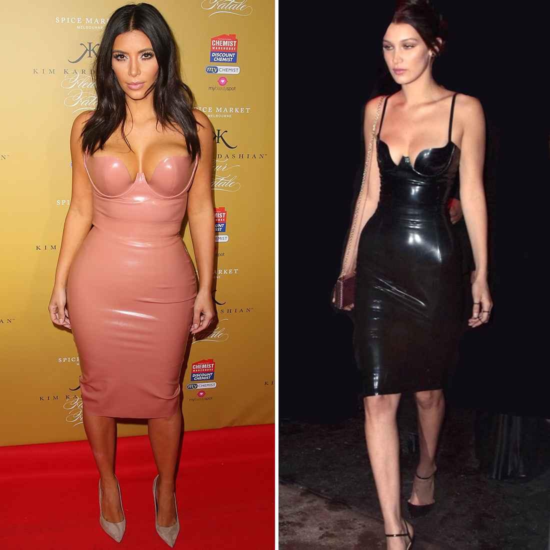 Сколько критики было в адрес Ким Кардашьян, осмелившейся первой надеть это латексное платье! Но согласитесь, на ней этот провокационный аутфит смотрится гораздо интереснее, нежели на Белле Хадид.