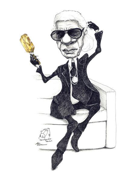 Суровый с виду, «кайзер моды» отличался тонким чувством юмора. Он создавал карикатуры и спокойно относился к карикатурам на себя.