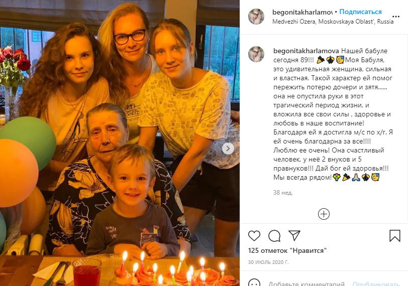Летом 2016 года в семье Александра и Виктории Харламовых родилась дочь Евгения. Девочка стала третьей, на данный момент самой младшей внучкой легенды советского спорта. (Спустя пару месяцев на свет появился ее двоюродный брат, ставший вторым внуком звездного хоккеиста. Но это — уже история жизни Бегониты.)