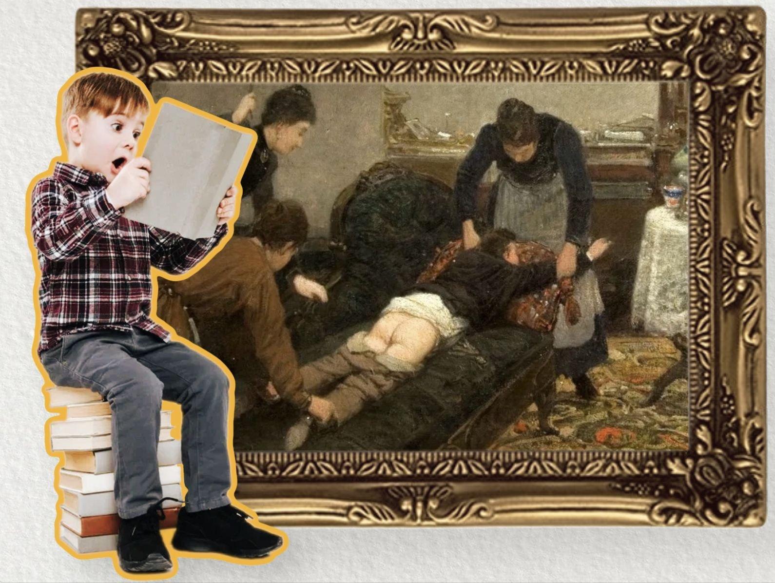 На этой картине Павла Ковалевского изображено жестокое наказание мальчика.
