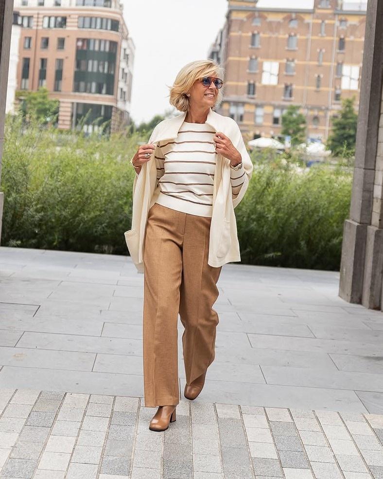 Образ должен выглядеть добротно и дорого. Это не значит, что нужно обязательно иметь дорогие дизайнерские вещи – на пенсию их не купишь. Выбирайте по своему бюджету классические, минималистичные вещи из качественных тканей. Они всегда выглядят презентабельно и легко комбинируются между собой, даже если подобраны в массмаркете.