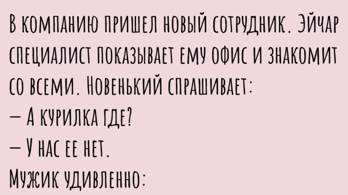 В компанию пришел новый сотрудник. Эйчар специалист показывает ему офис и знакомит со всеми. Новенький спрашивает: